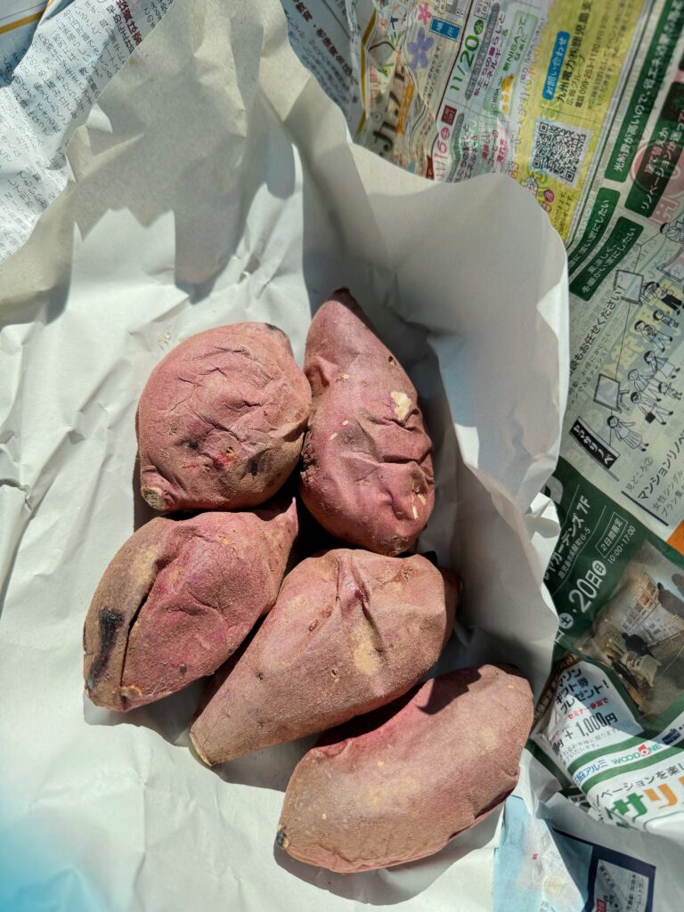 こんにちは~と声をかけると、奥からおばあちゃんが出てきてお芋を包んでくれます♪