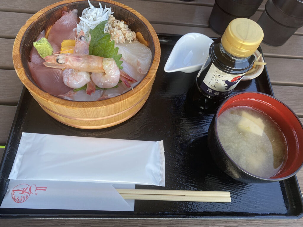 到着した時はテラス席には誰もおらず子どもは暴れたい放題でした🤣心地よい海風を感じていると、綺麗な海鮮丼が運ばれてきました!🤣