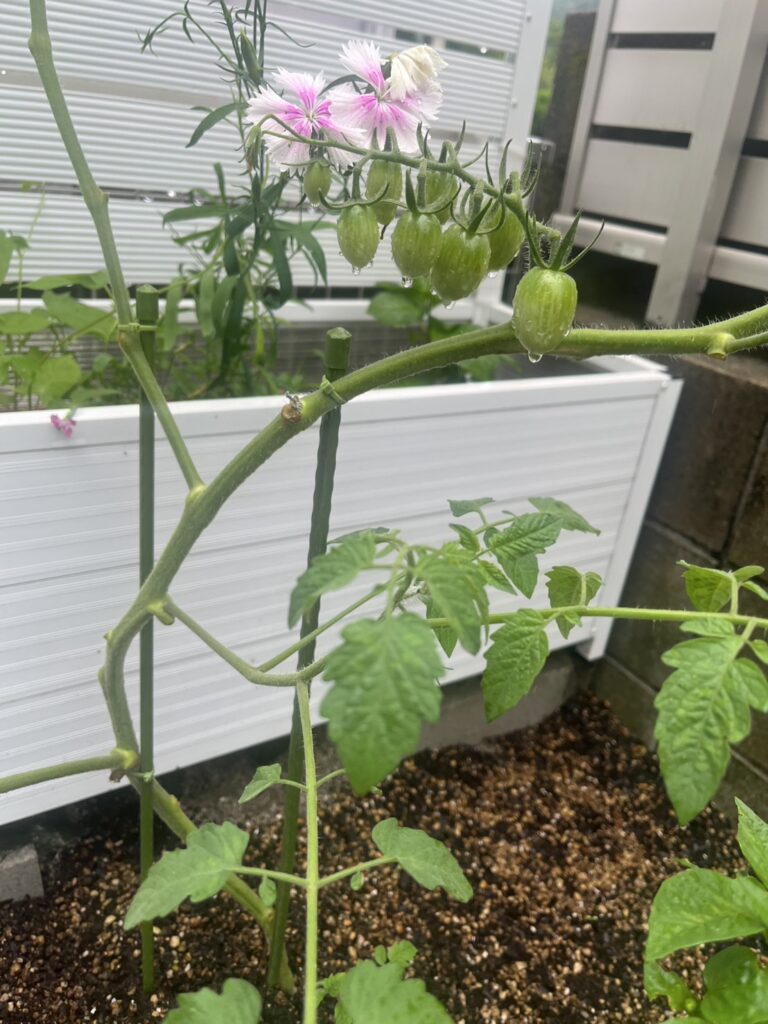 トマトは結構実になっているのですが、なかなか赤くならず大きくなっていってます。