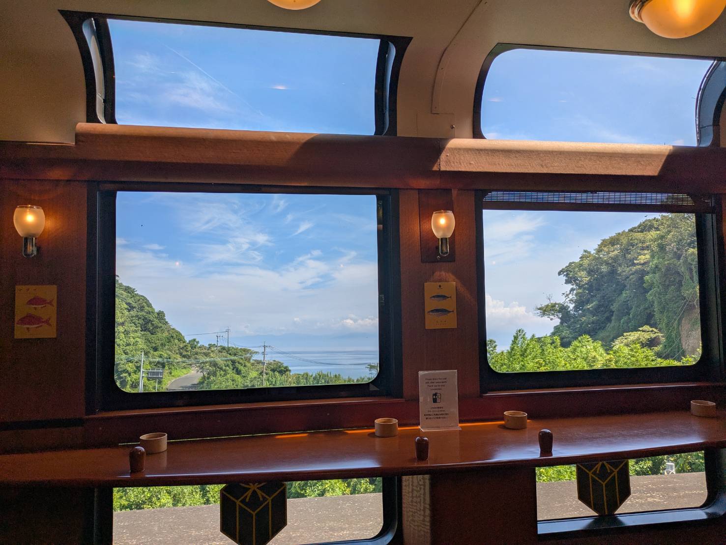 あっという間に谷山を過ぎ、喜入を過ぎたくらいから、海沿いを走るので車窓からの景色が最高でした。