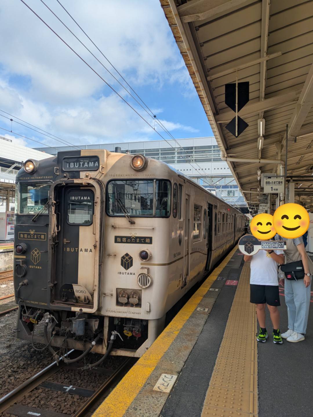 小さい頃からとにかく乗り物系が大好きな息子。本当は新幹線に乗って熊本や博多へと行きたかったのですが、意外と指宿ってなかなか行かないな~いつ行ったのが最後かな⁉と思い、せっかくなら『指宿のたまて箱』に乗ろう!と内緒で計画を立てました(´艸`*)