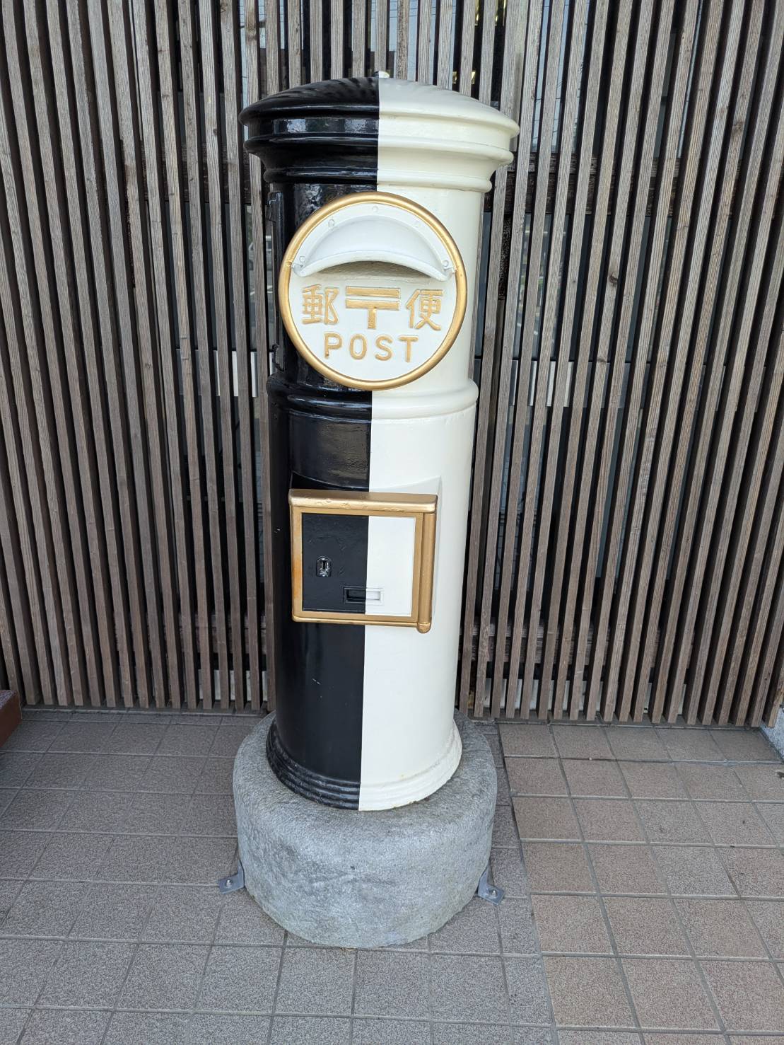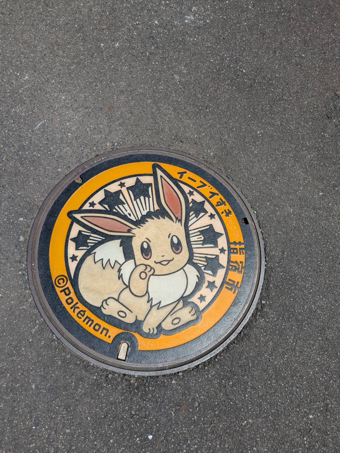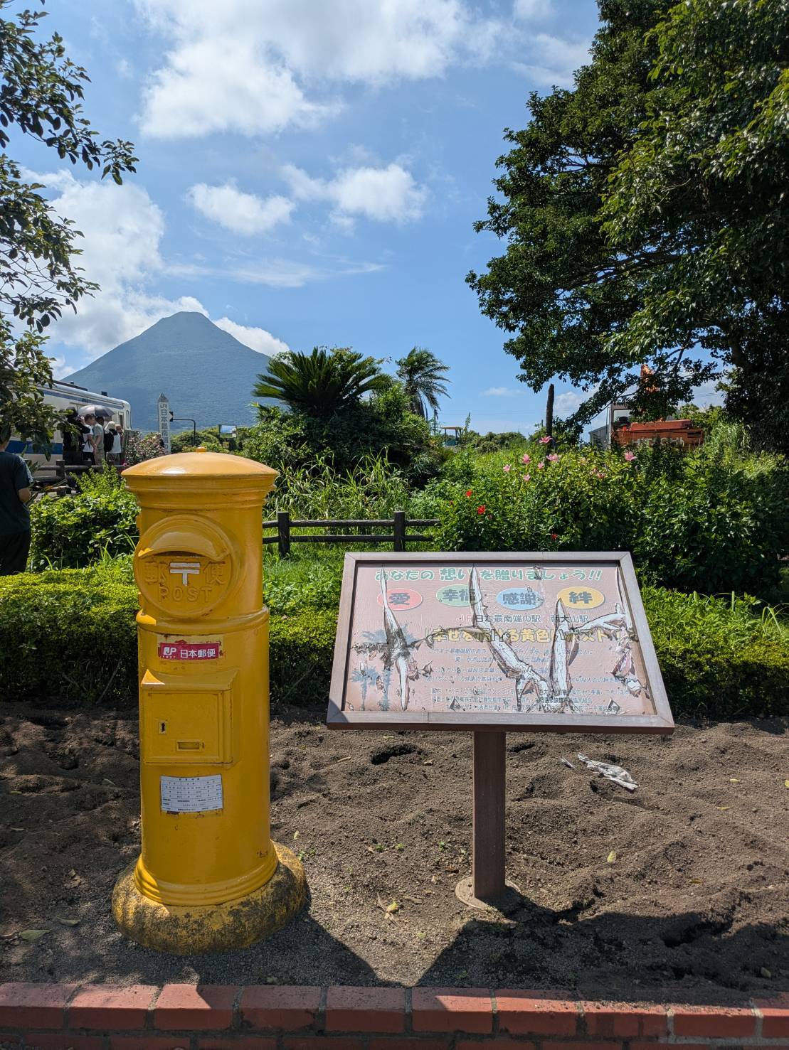 指宿駅を出ると、黒白のポストやイーブイのマンホール、足湯もありました。