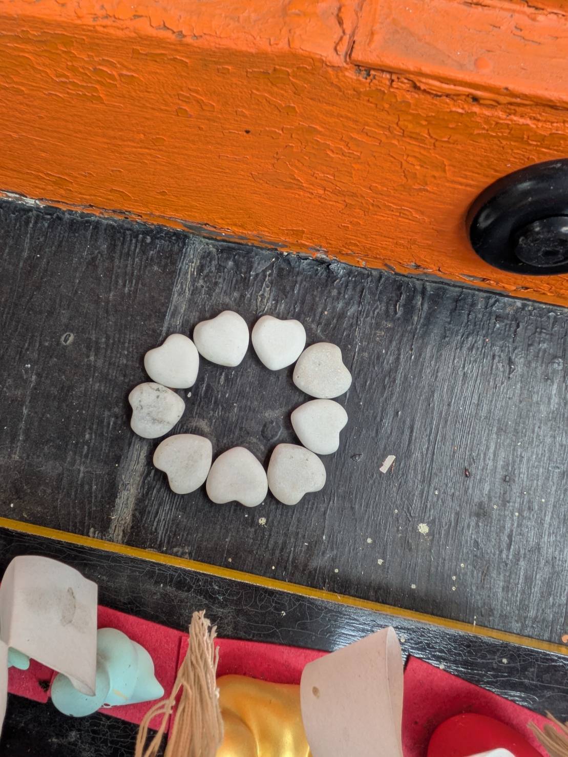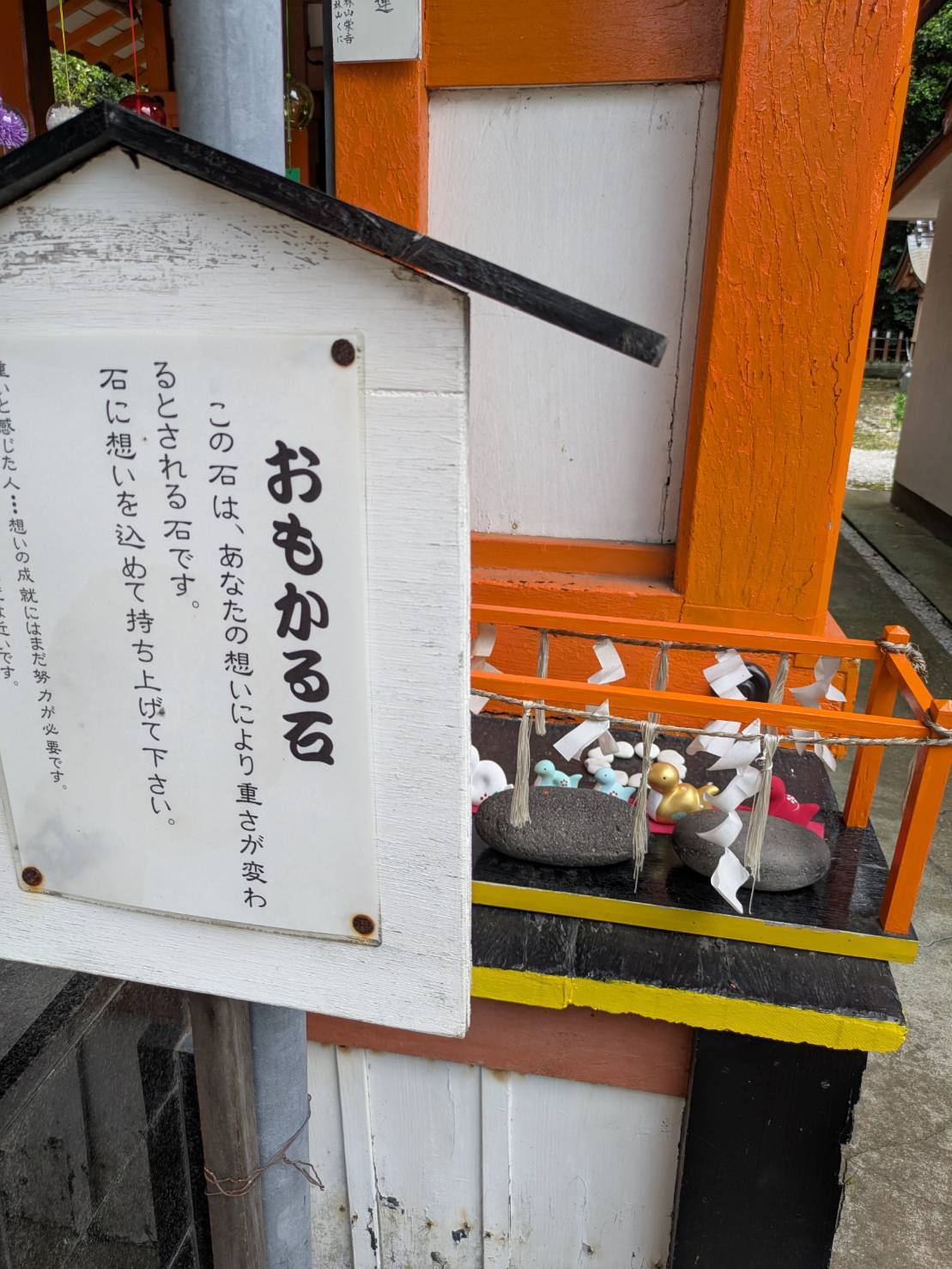 おもかる石の裏に、可愛い♡の石が置いてありました。