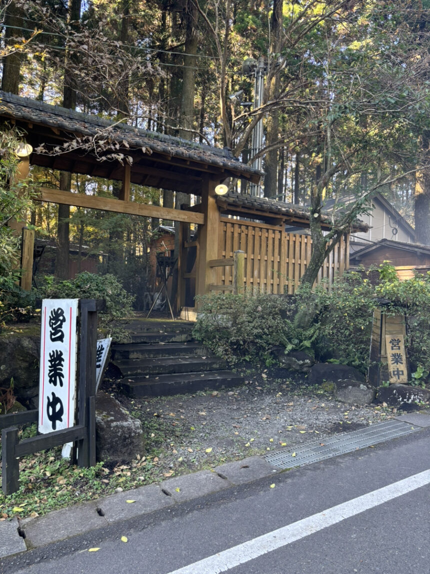 小林インターチェンジを降りて山道を5分くらい走ると営業中の看板が!