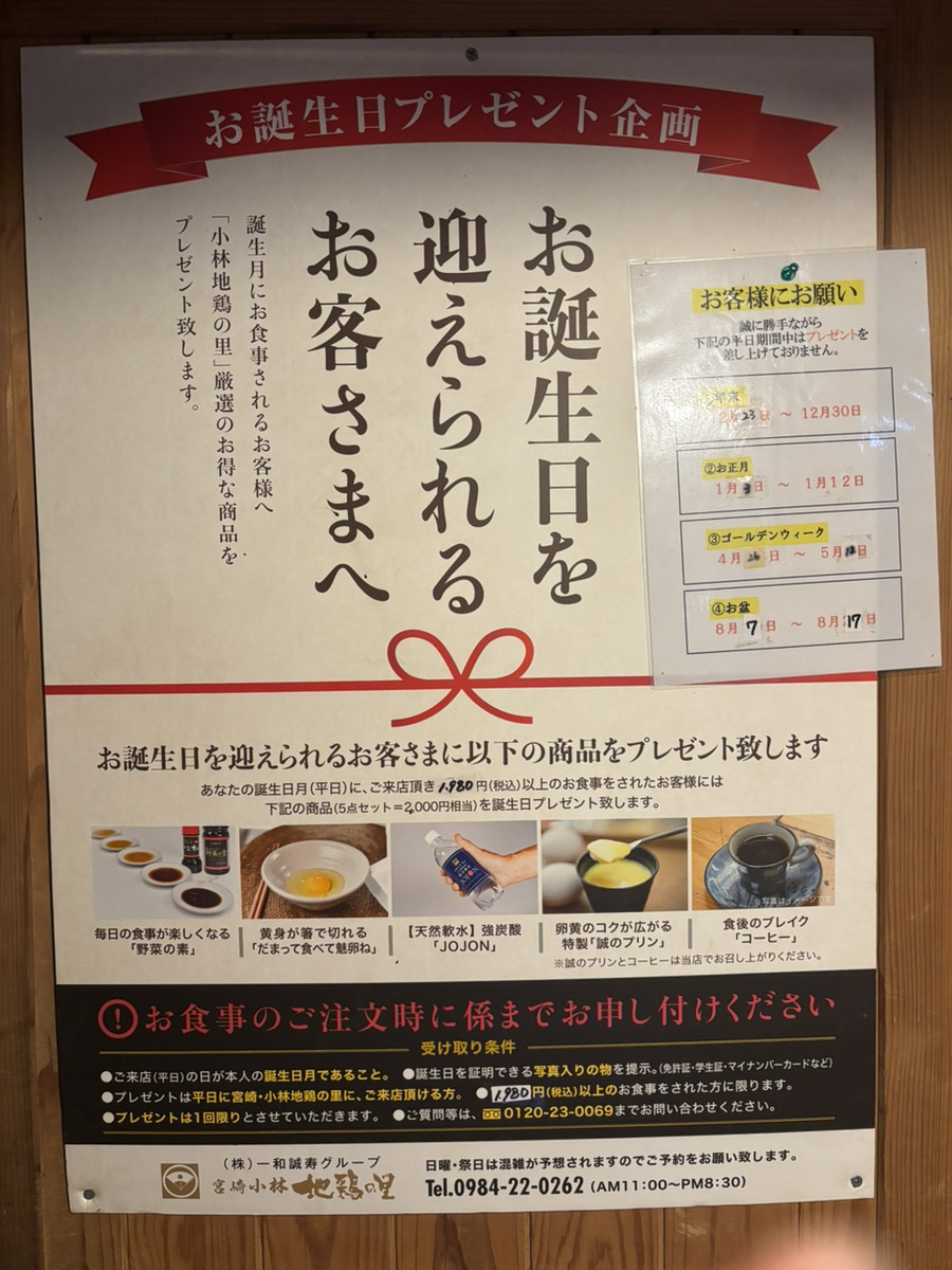 誕生月(平日)に1980円(税込)のお食事をされた方にはプレゼントがあるそうです。