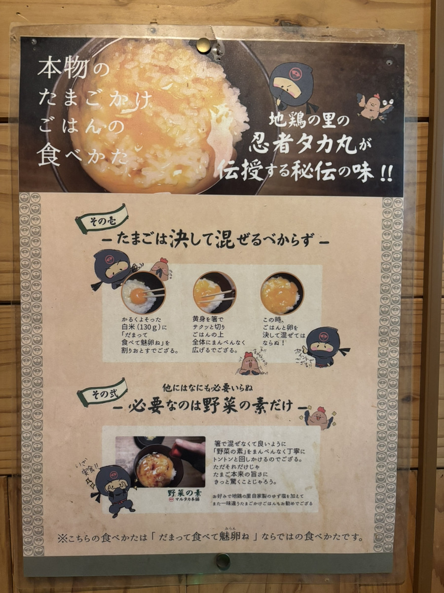 卵は新鮮で美味しいのはもちろんなんですが、この「野菜の素」という醤油が少し酸味があり、他では味わえない美味しさでした。この野菜の素は店内でも販売されていました。
