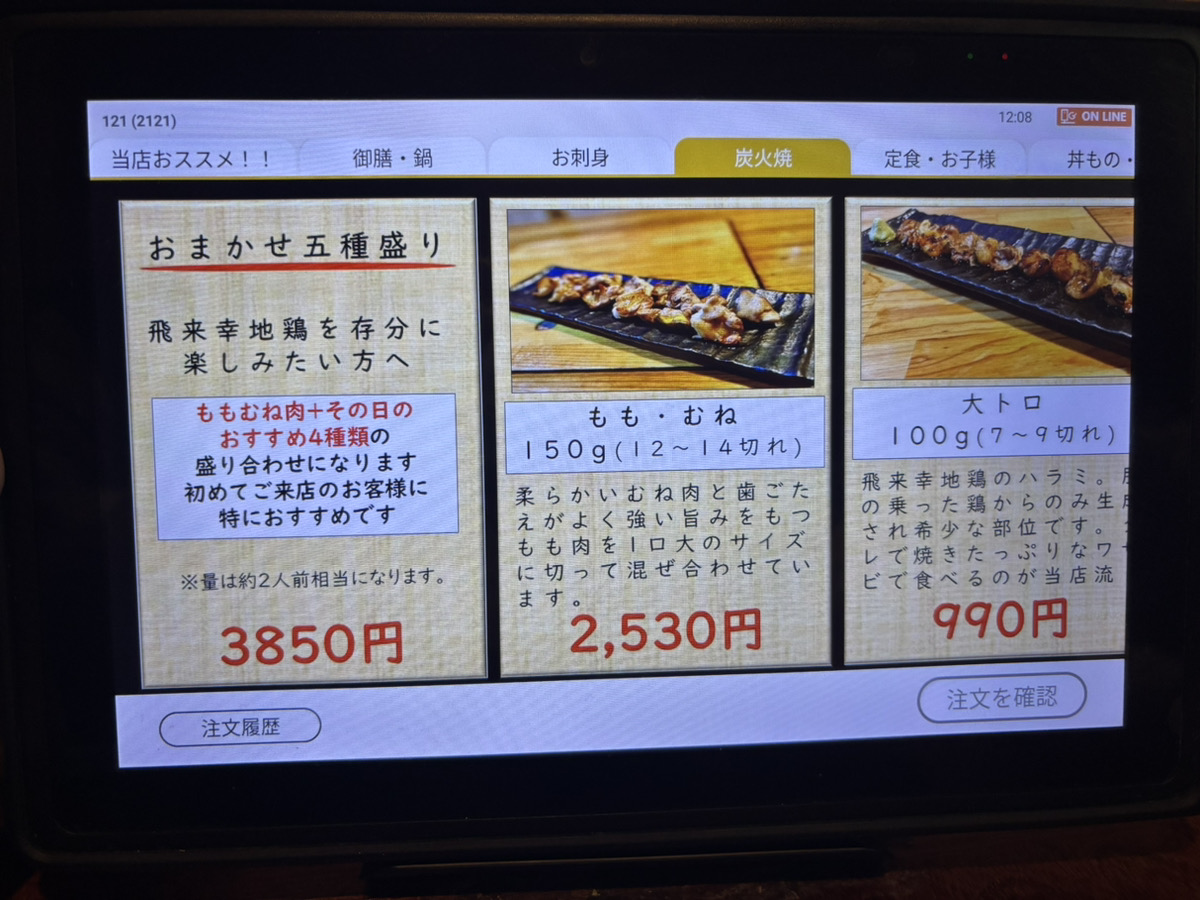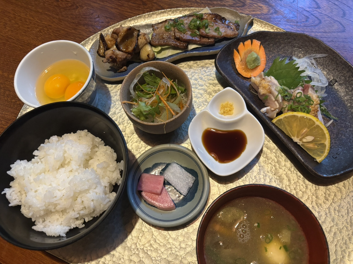 地鶏のたたきに炭火焼き、卵かけご飯も3杯まで無料と色々食べたい方におすすめのセットでした。