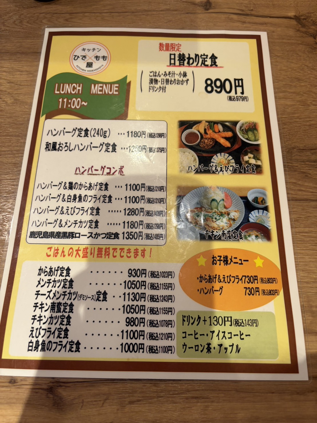 先日ランチに騎射場電停近くの「ひでもも屋」に行きました。