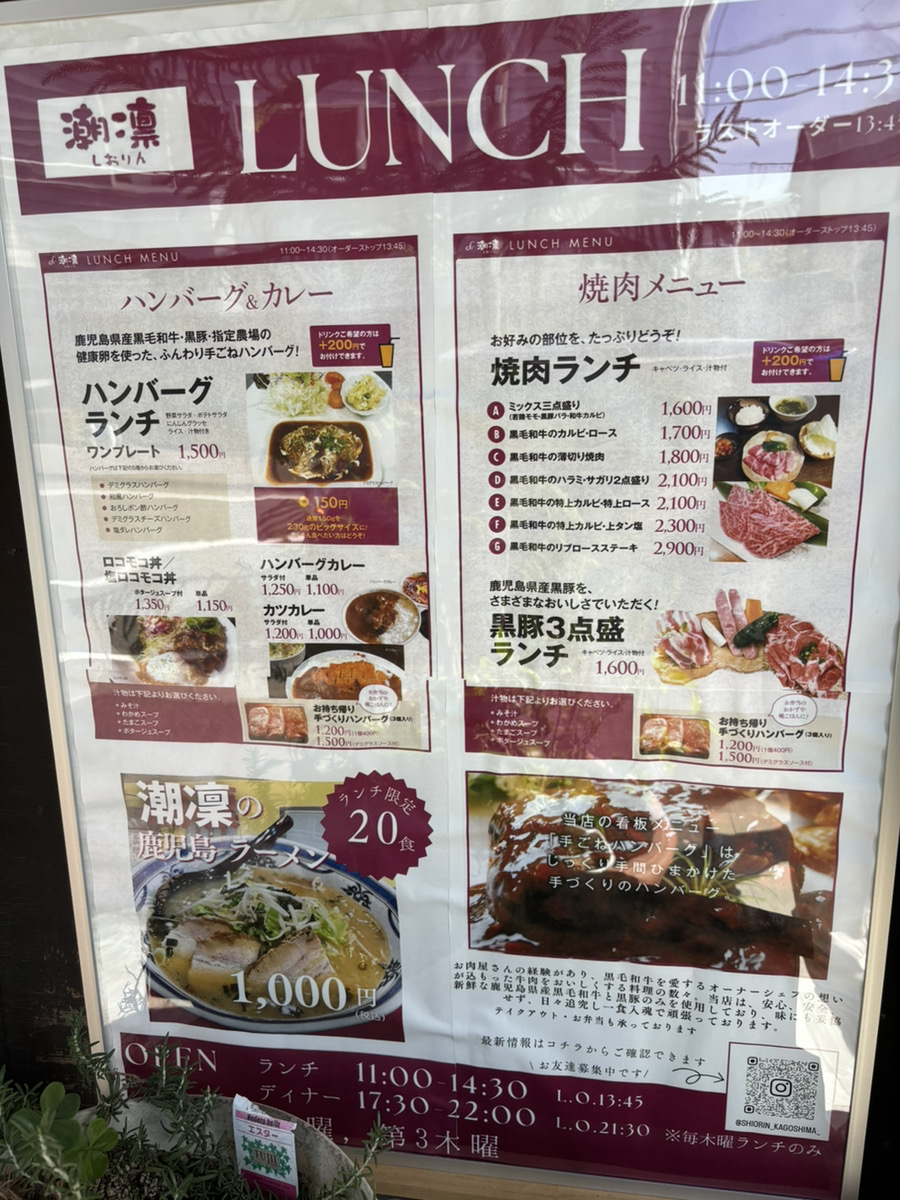 お肉は程よい霜降り肉で柔らかく、ハンバーグも鹿児島の黒毛和牛と黒豚のみを使っているそうでとてもふわふわで美味しかったです(≧▽≦)