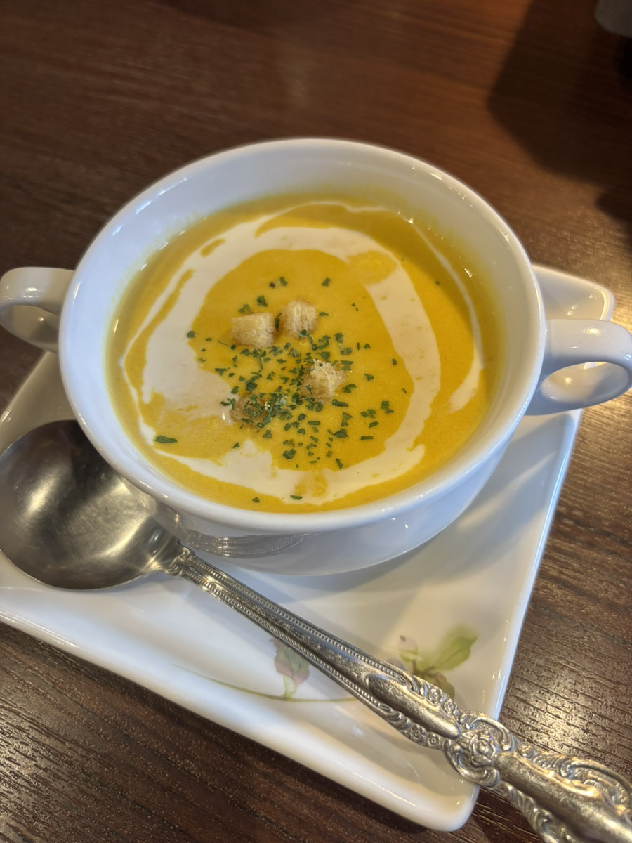 スープは味噌汁、わかめスープ、たまごスープ、ポタージュから選べたのでポタージュスープにしました。