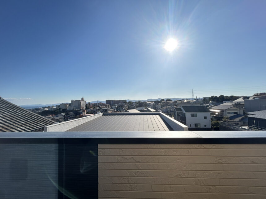 2階のバルコニーからの眺めは最高です(^▽^)/開口部が南向きといった観点からお洗濯物、お布団もあっという間に乾きます♪