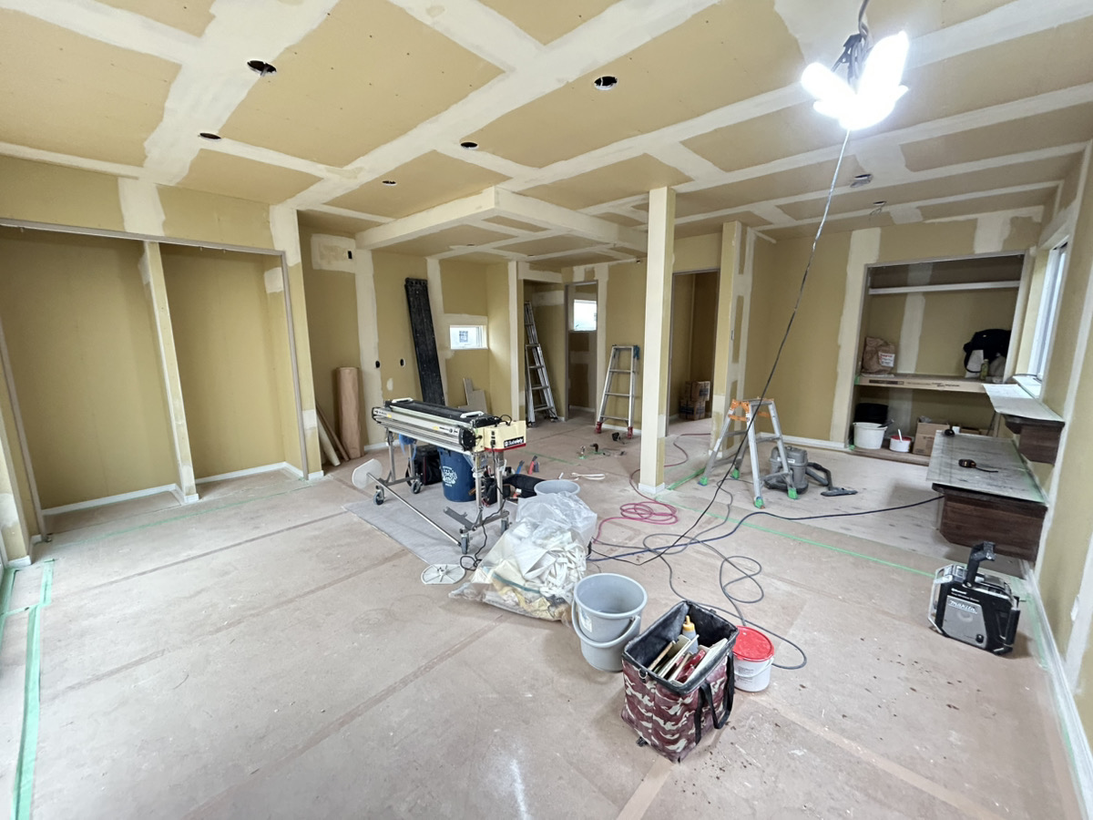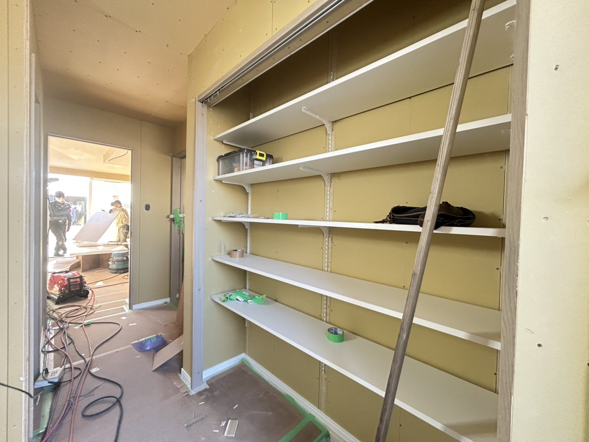 早めにご契約をしていただけましたので、床材色、建具色、キッチンカラー、浴室カラー、洗面カラー、クロス、外壁とお客様に仕様を選んでいただきました。お客様の好みが詰まったお家が完成間近です☆