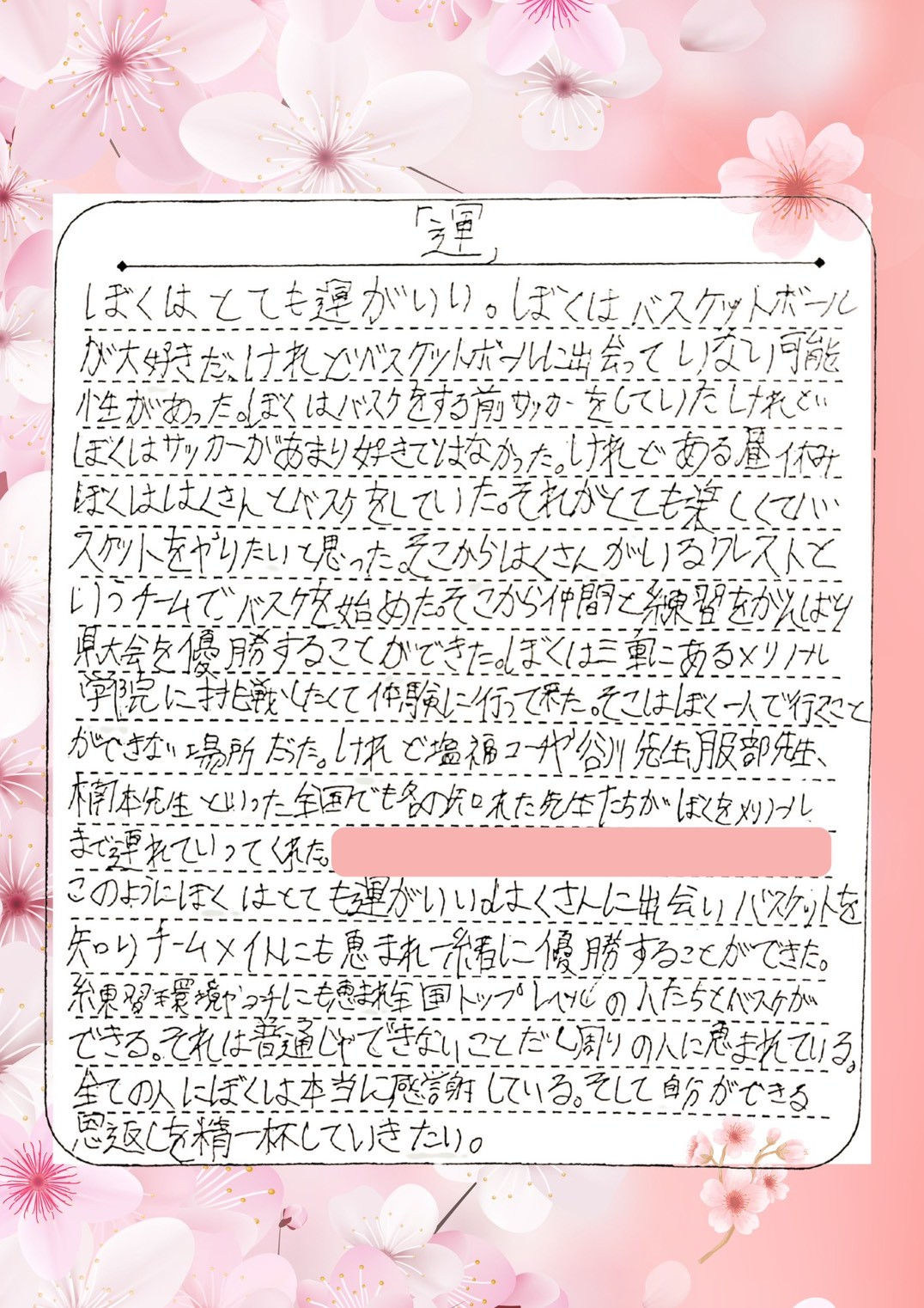 息子が、卒業文集に綴った文を載せますね🌸🌸🌸