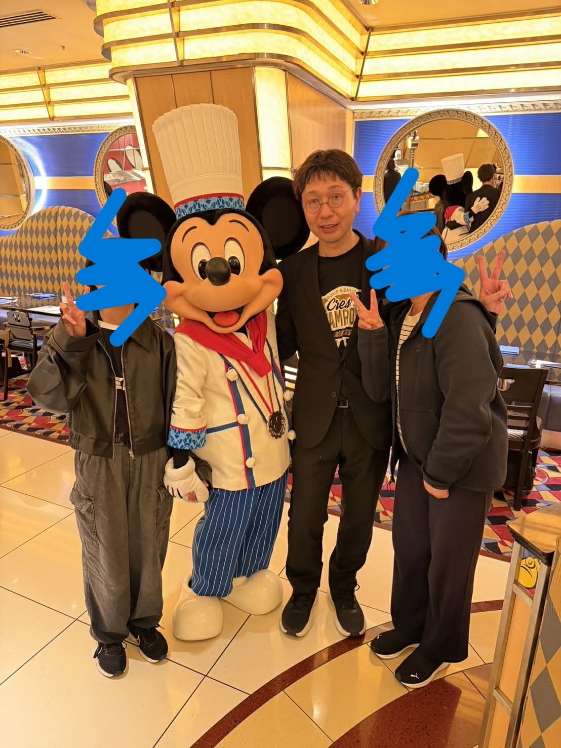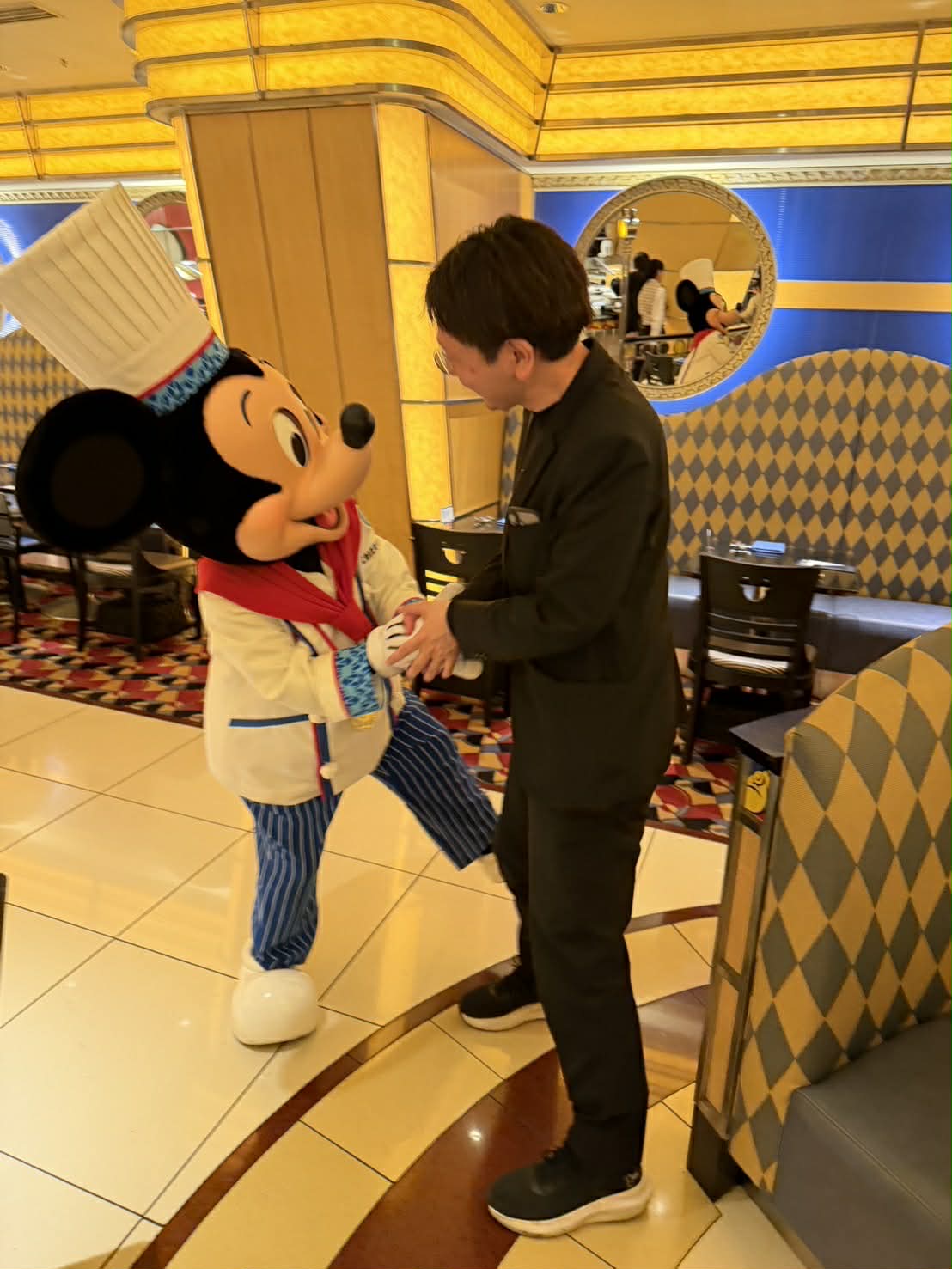 しかし、今回の滞在で最も心を動かされたのは、やはり彼との出会いです。 「シェフ」の姿をしたミッキーマウスが私たちのテーブルに姿を見せた瞬間、会場の空気は一変しました。おじさんのの私ですら、彼を目の前にしたときには言葉では言い表せないほどの高揚感を覚え、思わず童心に帰って感激してしまったのが本音です。