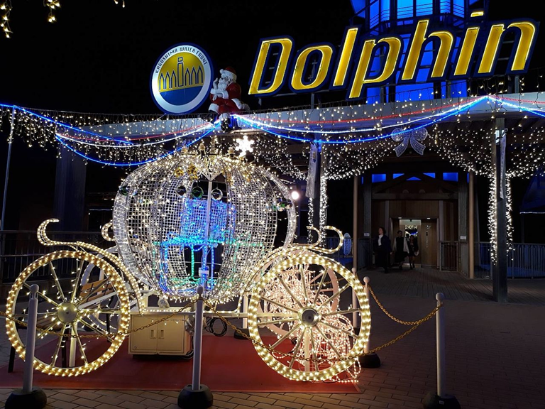 約24万球のイルミネーションは、暖かな光のクリスマスを演出し、中央水辺ゾーンには、イルカやかわいい動物たちの癒しの水辺が広がっていましたよ。