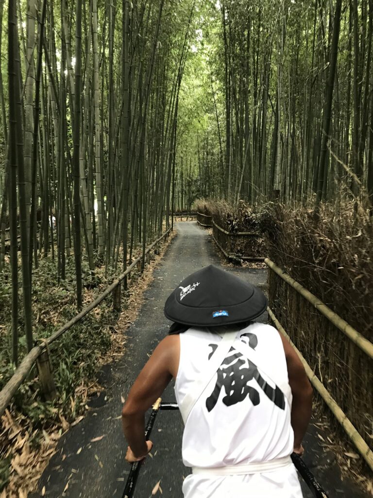 軽く昼ご飯を食べて、竹林の道を目指して散策していましたが、既に歩き疲れてしまい人生初の人力車に乗ってみました!