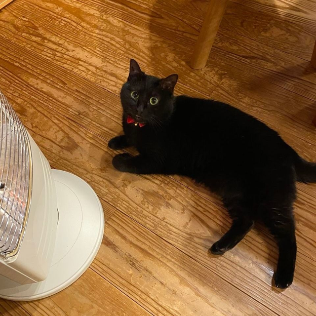 家に帰り、まず電気ストーブをつけると真っ先に来るのが、5歳の猫娘『クロ』です。