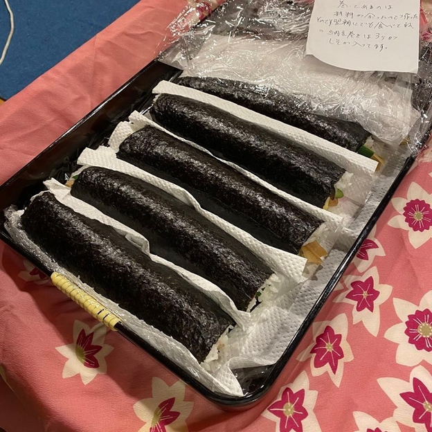 先週のうちに『恵方巻作っておくから、お仕事帰りに取りにきて~』と言われ